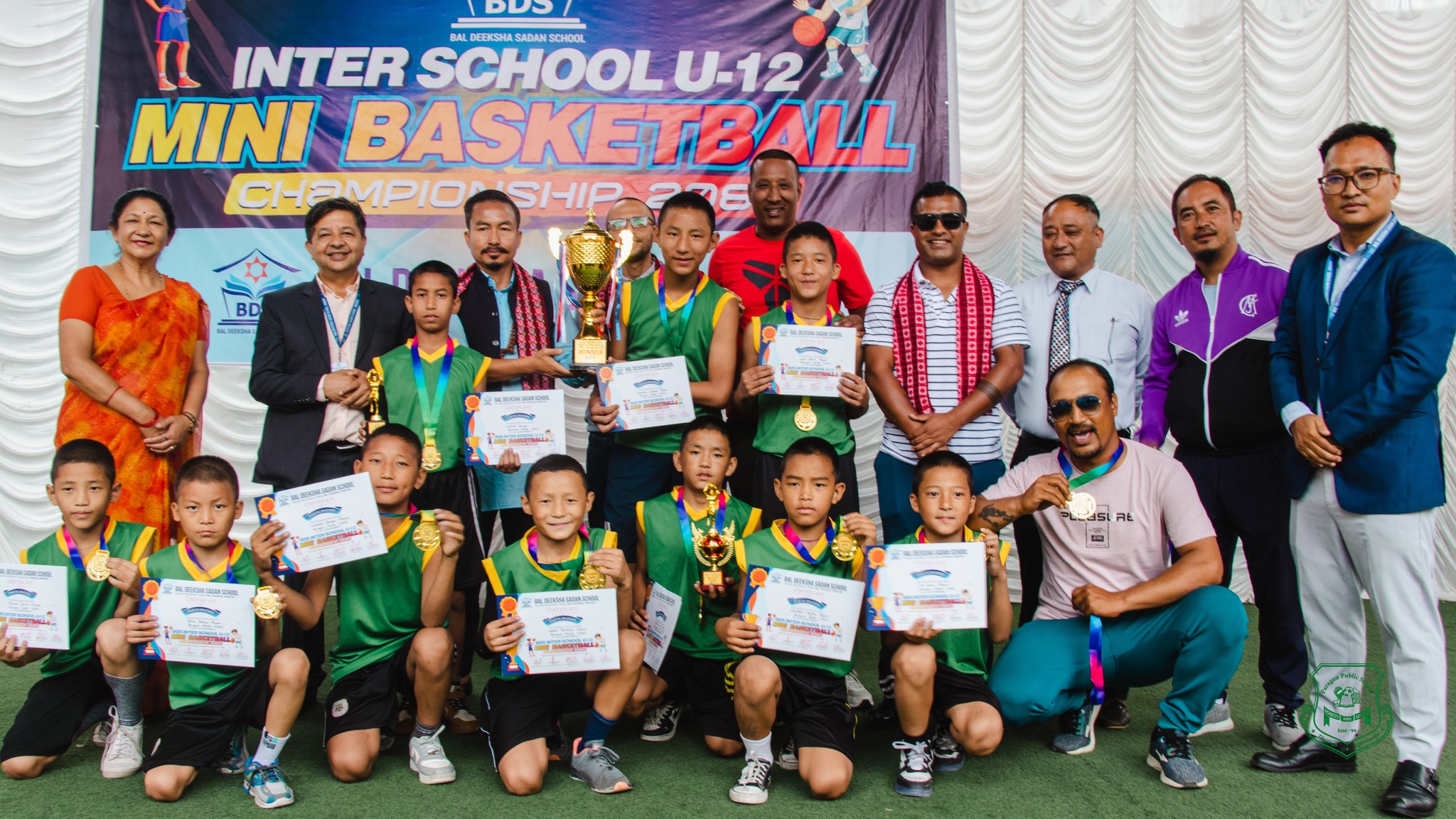 Our school came together today to honor our young champions who clinched the First Inter School U-12 Mini Basketball Championship 2080 title! 🎉🏆🏀